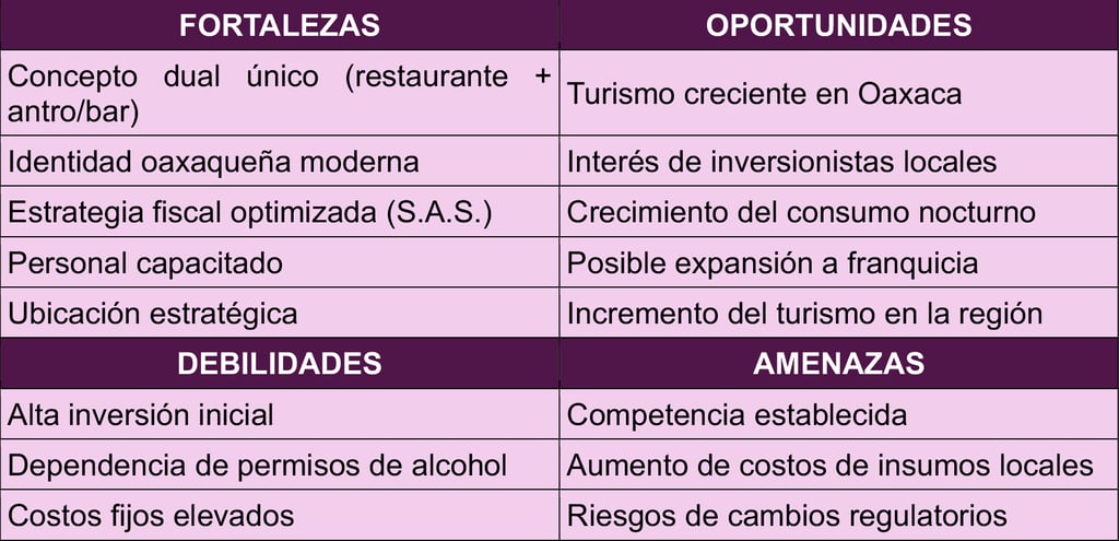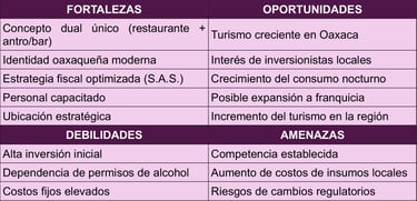 El proyecto busca consolidarse como una marca distintiva en Oaxaca de Juárez, enfocada en excelencia, innovación y experiencia multisensorial, con un modelo rentable y escalable a corto plazo.